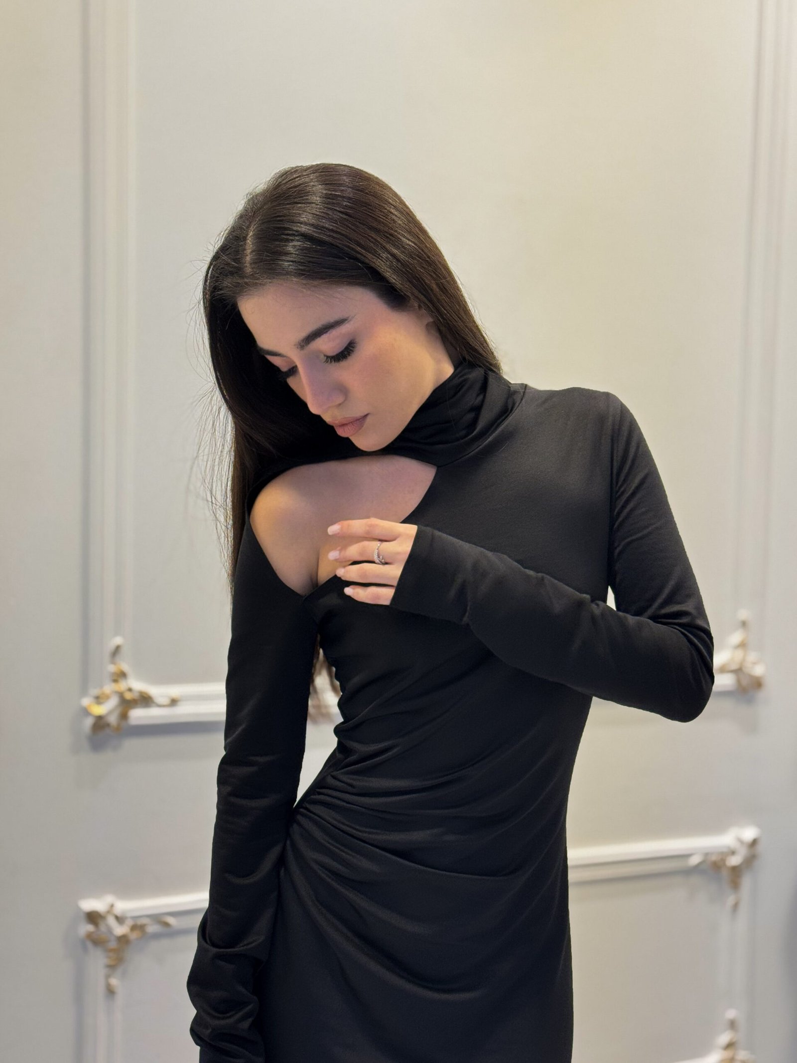 Step into sophistication with the Cut-Out Couture Long Black Dress. Meticulously crafted to exude a refined charm, this dress is the embodiment of understated glamour. Perfectly suited for evening events, galas, or romantic dinners, it blends contemporary fashion elements with timeless appeal, enabling you to make an impression without uttering a word. Ideal for anyone who values individuality and poise, this black dress effortlessly highlights your elegance.Fashion-Forward Design Details